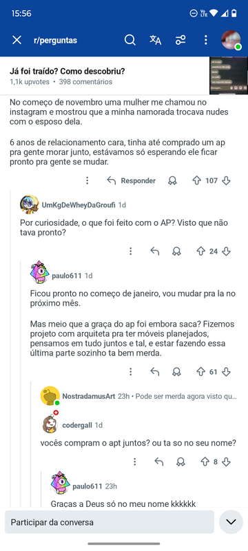 Já foram traídos em um relacionamento?