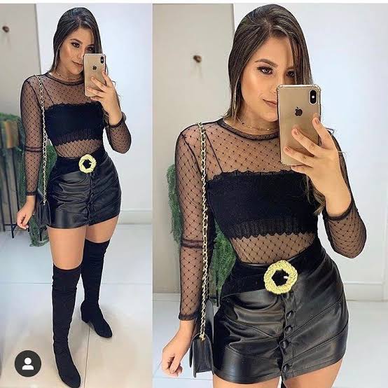 Vocês acham que blusa cropped em tule, com saia de couro é muito piriguete?