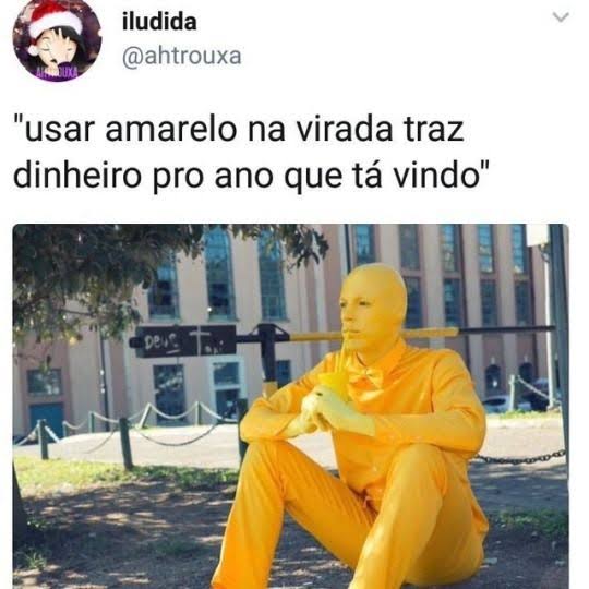 Nunca dá certo, mas como a esperança é a última que morre, sempre passo de amarelo pra ver se fico cheia de dinheiro '-'
