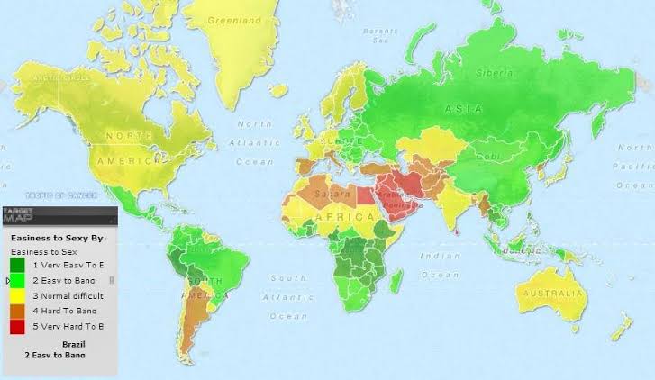 Ele localiza qual o nível de dificuldade para se conseguir sexo com mulheres de cada país
