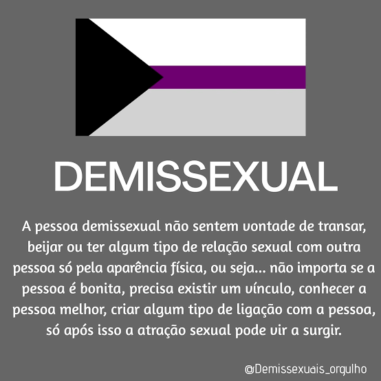 Sou demissexual, não costumo me sentir sexualmente atraída por ninguém. É preciso desenvolver algum sentimento de carinho e afeição pela pessoa para despertar esse desejo oculto.