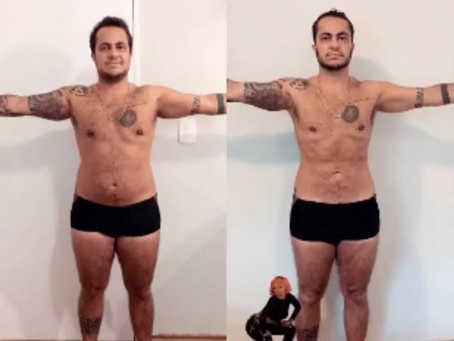 Repare como o quadril dele vai até a linha do umbigo: