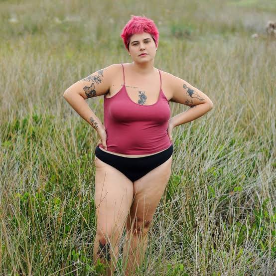 Gordona, peluda, muito magra, cabelo colorido, tatuagens, fumante e feiminazi.