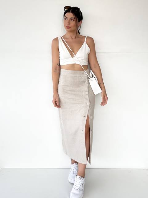 Faz assim: se está chamativa na parte de cima, equilibre com uma roupa mais discreta na parte de baixo. Da mesma forma, se está ousada na parte de baixo, põe por algo mais recatado na parte de cima.