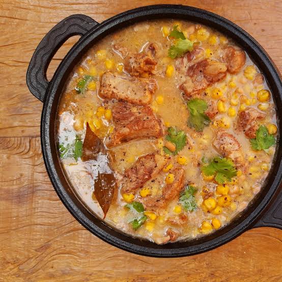 Munguzá aqui e salgado e feito com carne e feijão ou fava