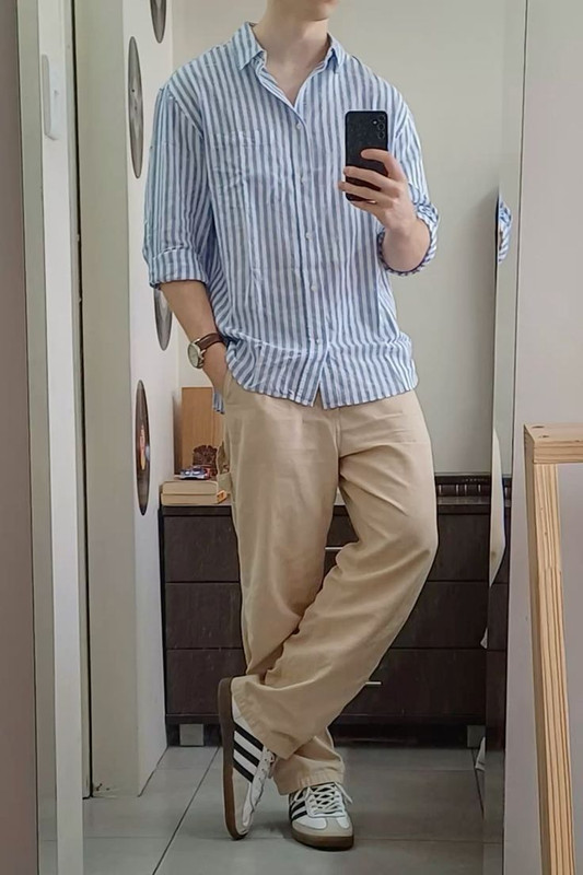 Não entendo praticamente nada de moda masculina, mas, se eu fosse homem, me vestiria de forma simples e discreta. Depende muito da sua personalidade, mas geralmente homens são bem práticos no vestir. Aqui na minha região, como faz muito calor, a maioria dos homens usa bermuda, mas resolvi colocar mais opções de sair, para trabalho, estudo. O jeito desses rapazes das fotos acho bem razoável.