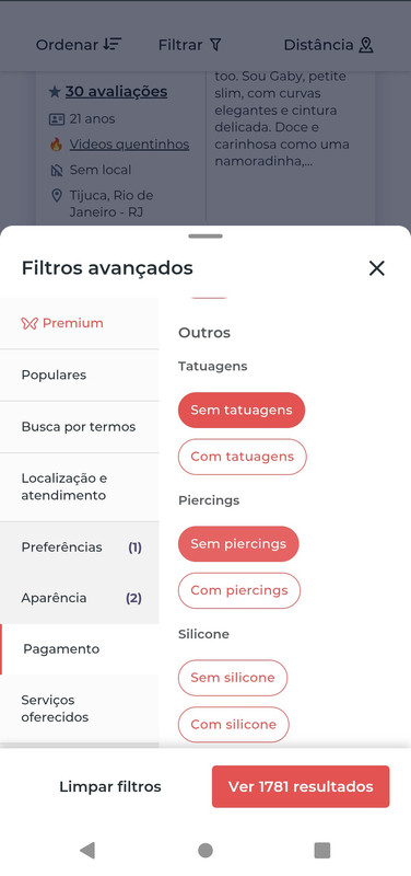 Das 4062 acompanhantes cadastradas no Fatal Model na cidade do RJ, 1781 estão nas tags: sem tatuagem, sem piercing e não fumante.