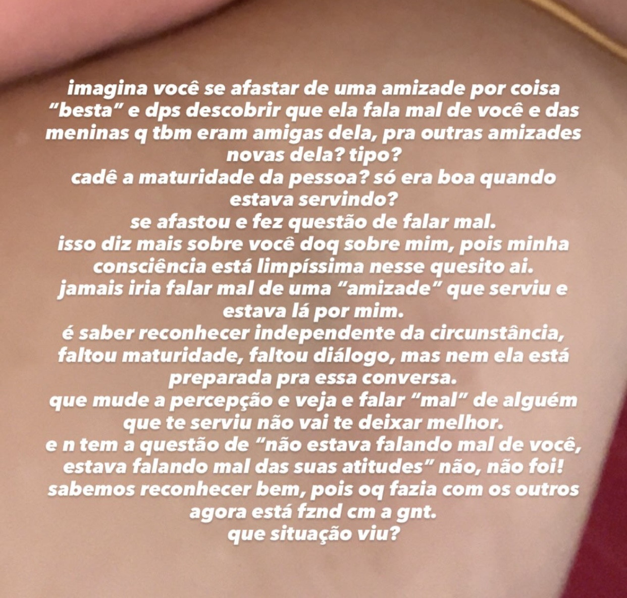 Acho difícil ter amizade com pessoas que fala mal de outros amigos, pois isso significa que você também será alvo.
