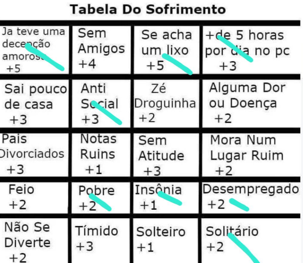 Não concordo com essa tabela de sofrimento.