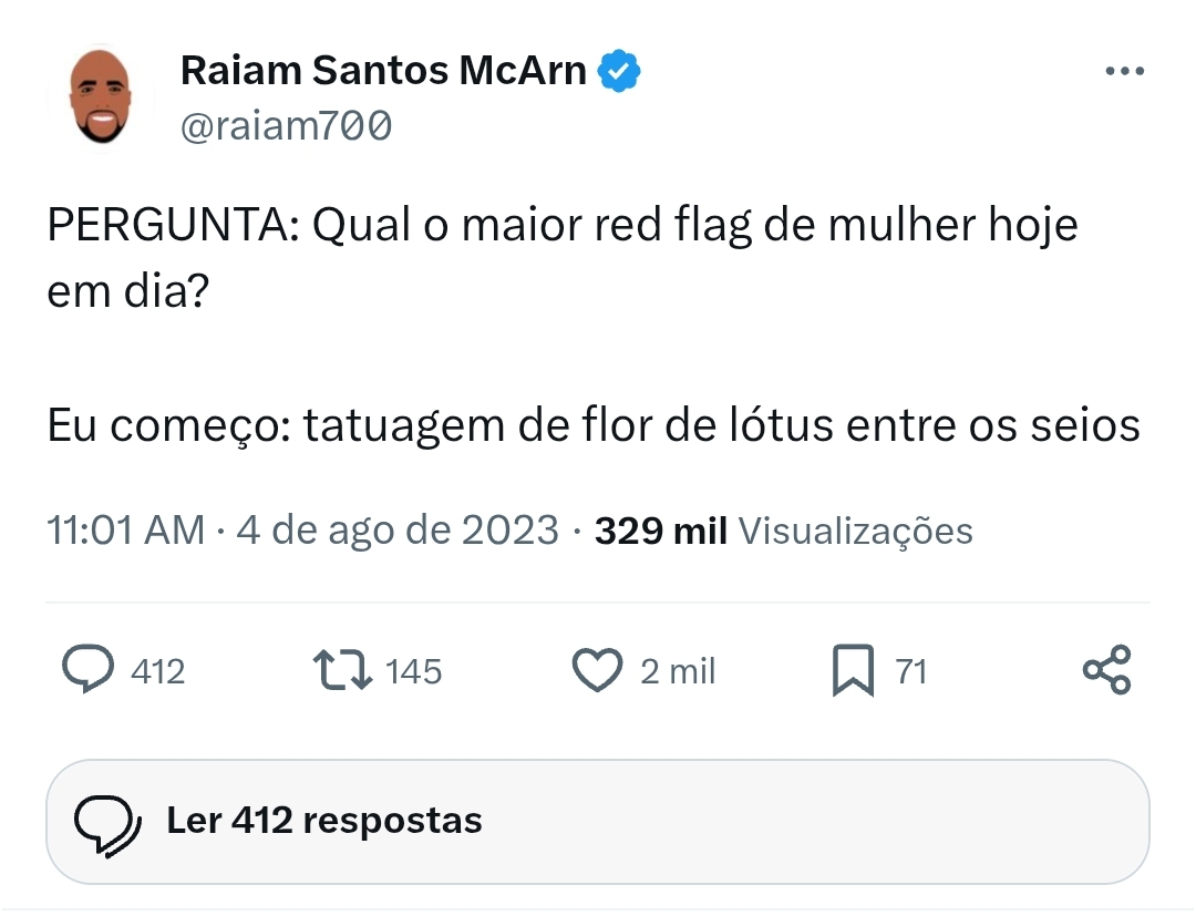 Pior que essa red flag que ele citou é muito res flag msm kmkkkkkkk isso ai é tatuagem de puta.