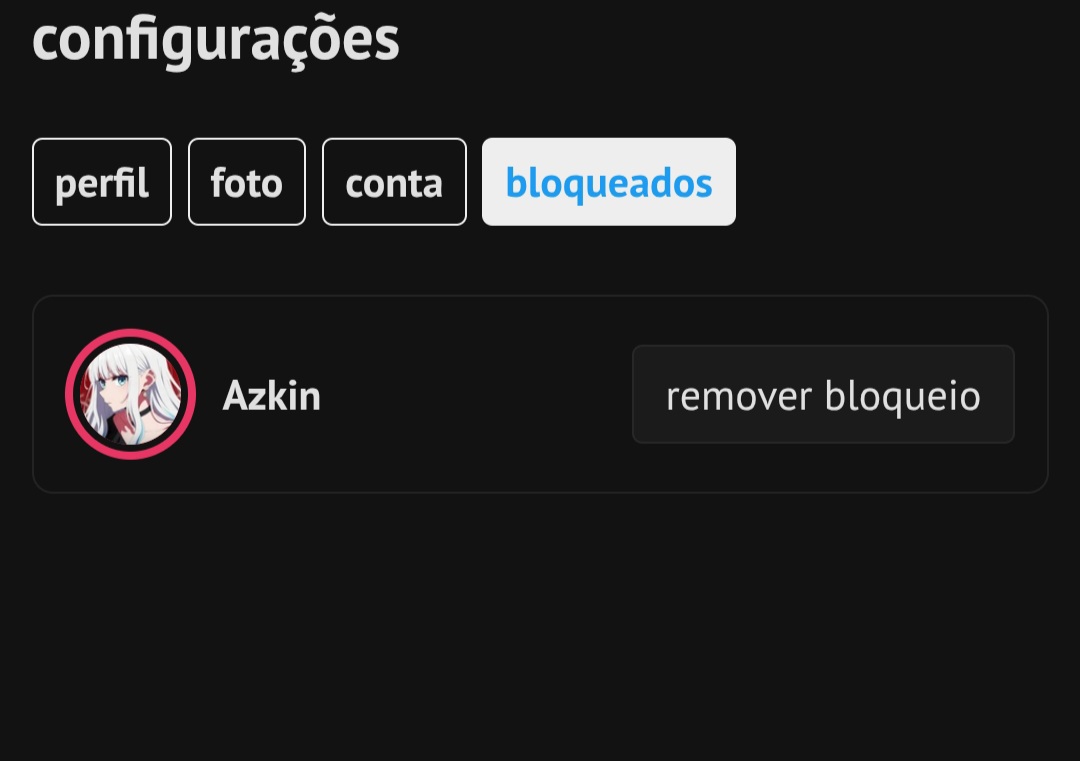 Não bloqueei nenhum usuário (a), ainda.