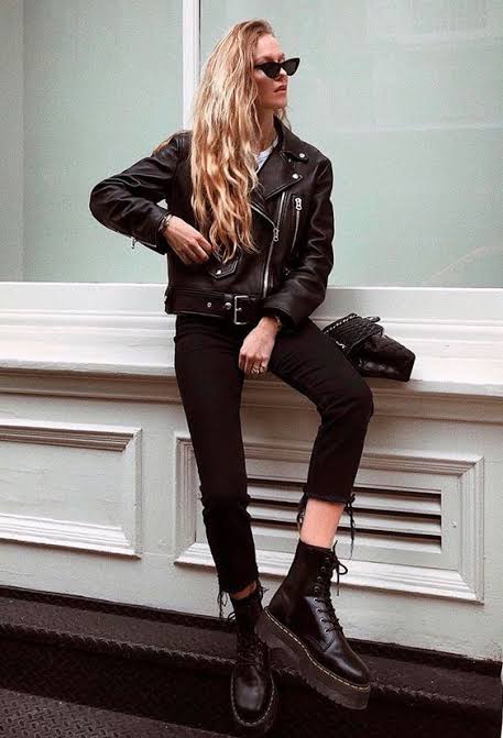 Vai com uma calça mais solta, vestido e moto são meio paia juntos