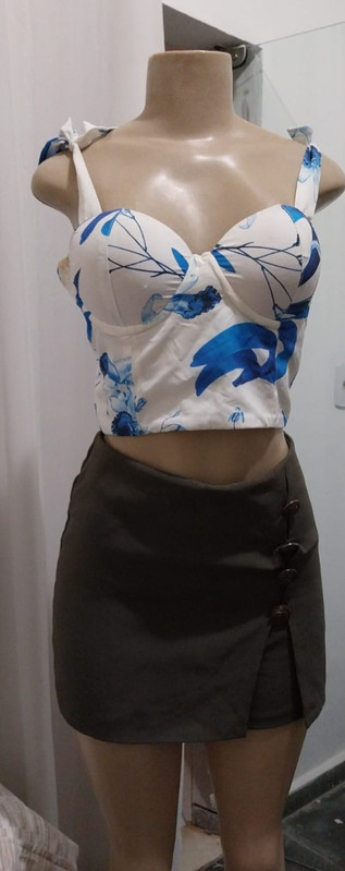 Eu gostei do short/saia, é bonito. Só não gostei muito da blusa... mas não ficou ruim... Talvez uma blusa branca ficaria legal, tipo essa
